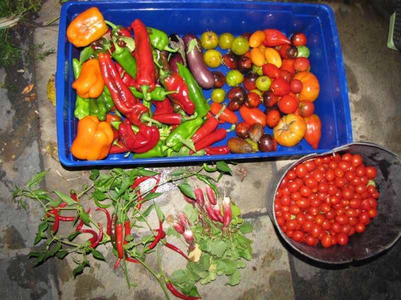 Les haricots ont également souffert de la sécheresse, notamment ceux à rames; les poivrons et piments ont très bien donné et ça continue, le reste à part oignons et échalotes qui ne veulent rien savoir, s'est assez bien comporté notamment les pommes de terre.