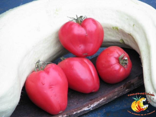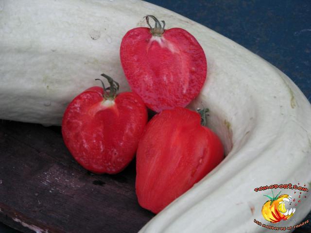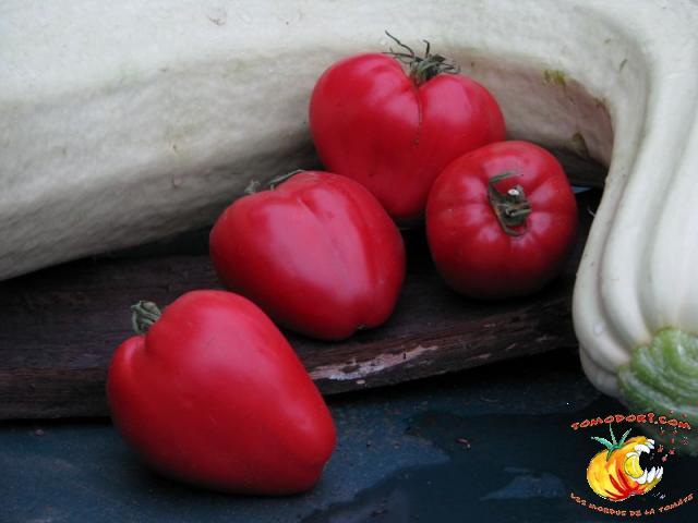 Nommée aussi Cœur de Bœuf Reif Red. Belle variété de type cœur de bœuf, qui produit beaucoup de fruits rouges rosés, à la chair pleine et très savoureuse. Une belle découverte, productive et régulière. Variété au feuillage normal, de croissance indéterminée et semble-t-il résistante aux maladies. Allez vers la fiche de cette variété