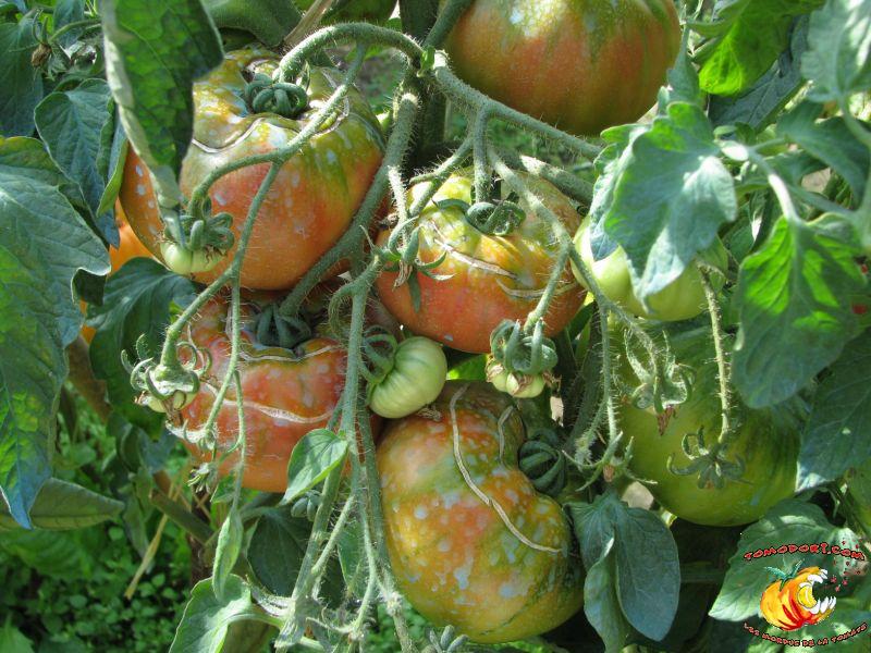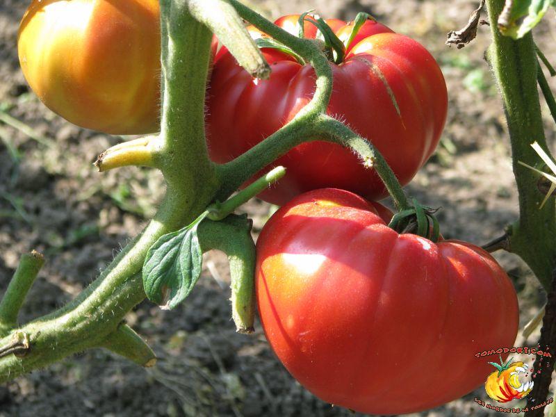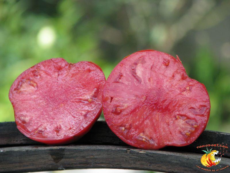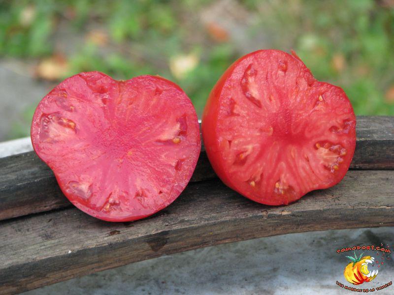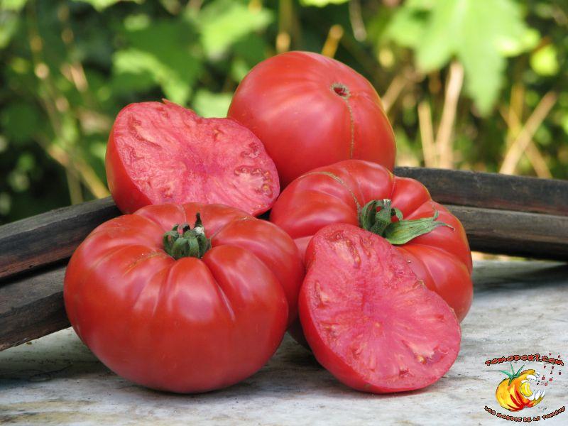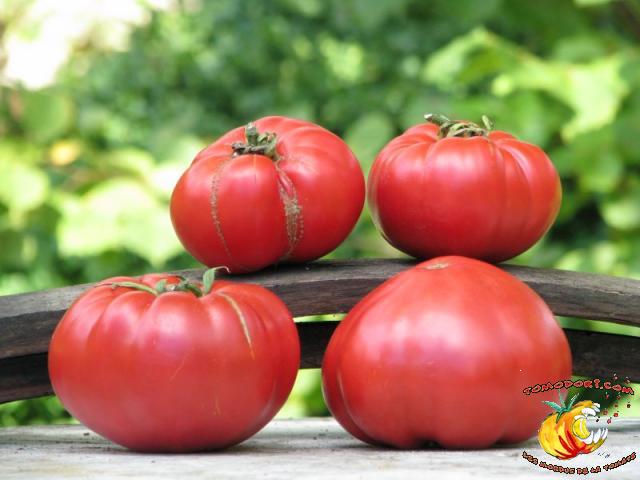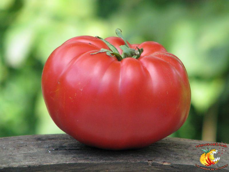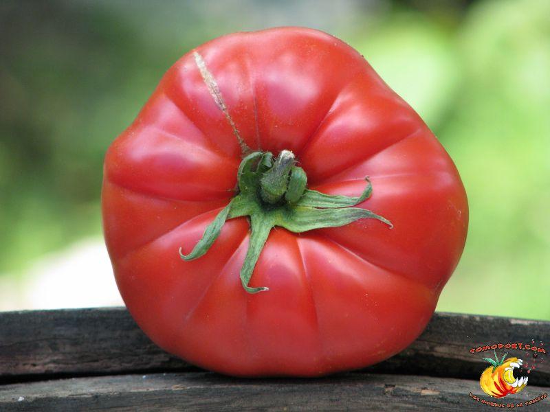 Très belle tomate d'un beau rouge, de forme renflée, côtelée, un peu aplatie. Chair très fournie, à la saveur prononcée de tomate ancienne. Plant qui donne des bouquets de 3 à 5 grosses tomates dépassant les 500 g. Variété de saison, presque tardive, originaire d'Italie. Allez vers la fiche de cette variété