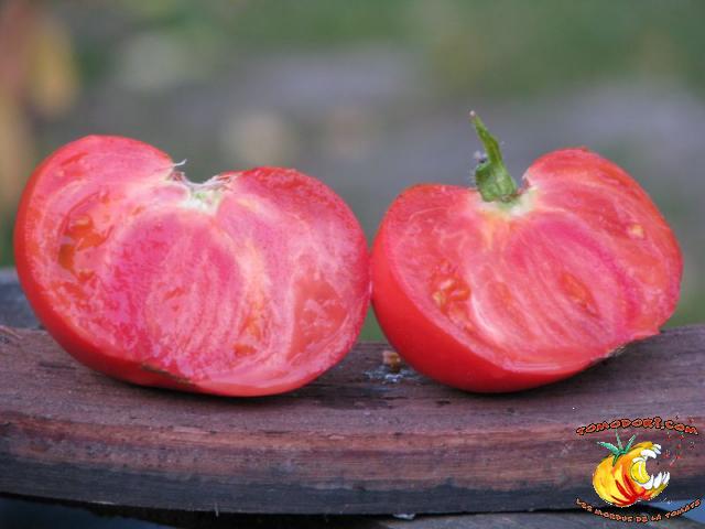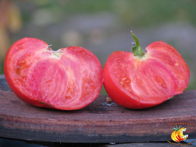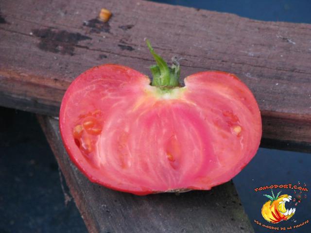 Il s'agit d'une version cordiforme de Brandywine. Lignée pas encore fixée, nous avons obtenu cette année des fruits de taille modeste, plutôt aplatis qu'en forme de cœur. Saveur puissante, très parfumée. Chaire dense. A réessayer. Allez vers la fiche de cette variété