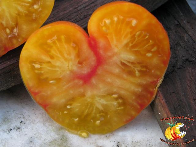 Une variété de tomate de type ananas, mais plus petite, aux couleurs bariolées. Le fruit est un peu côtelé. La chair est multicolore, de saveur parfumée, mais moins qu'Ananas ou Striped German. A maturité, elle est un peu molle. Production assez abondante de tomates, en grappes de 3 à 5. Croissance indéterminée, feuillage de pomme de terre. Variété originaire du Mexique.