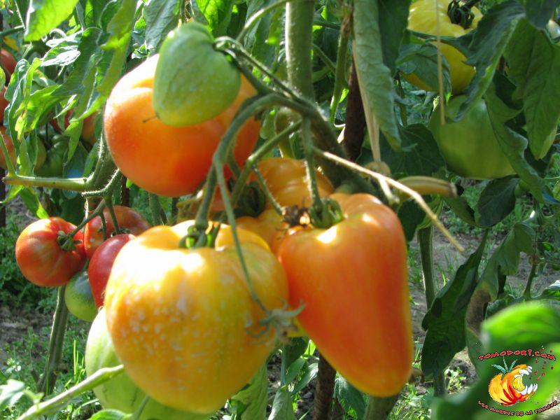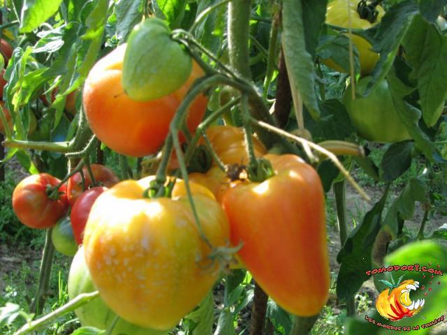 Tomate Orange Russian Date : 01/02/2009 Tomate jaune orangée marbrée de rose-rouge. Chair ferme et superbe. Tomate de saveur excellente, plutôt douce, pas de saveur "rentre-dedans". Croissance indéterminée, feuillage normal.