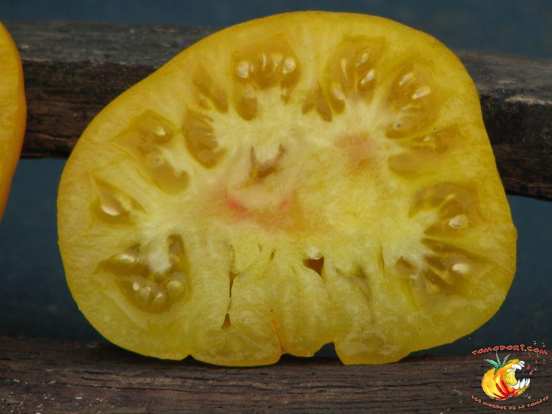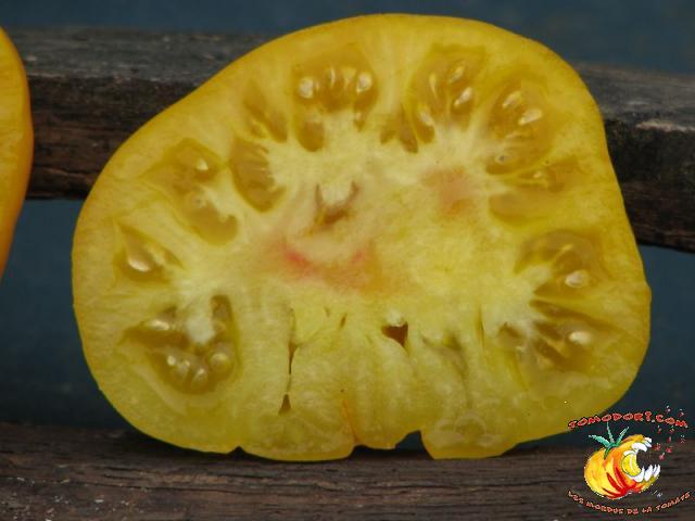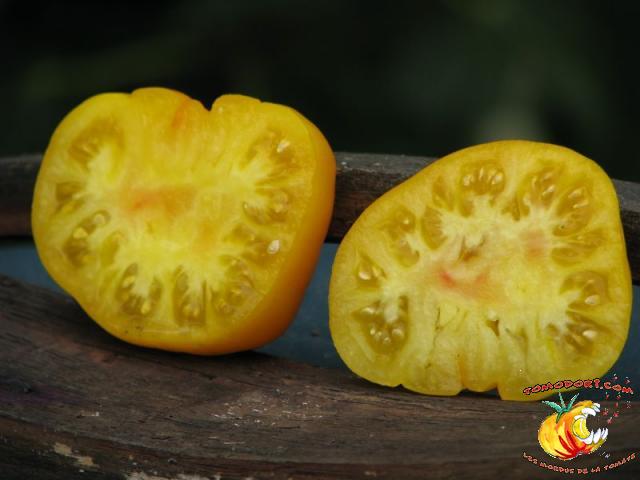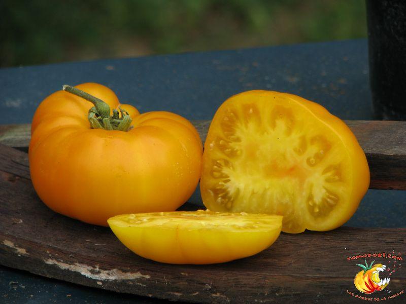 Tomate Saint Vincent Date : 23/04/2009 Variété de tomates jaunes, juteuses à maturité. Variété indéterminée et très productive. Feuillage normal, délicatement lobé.