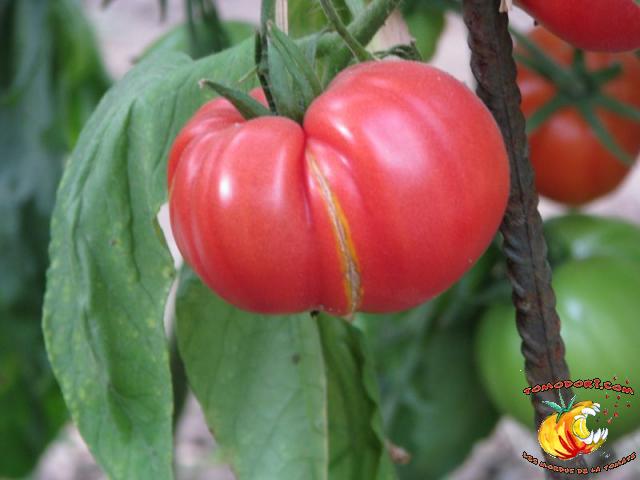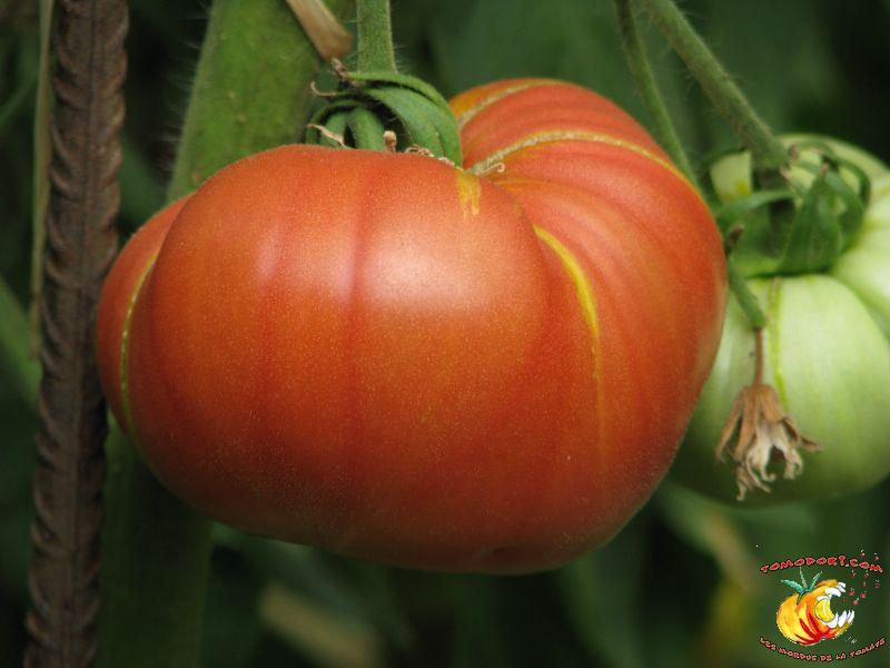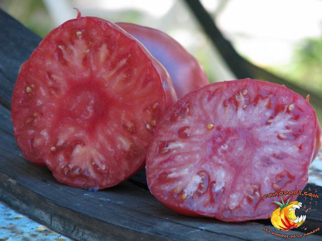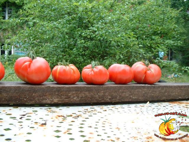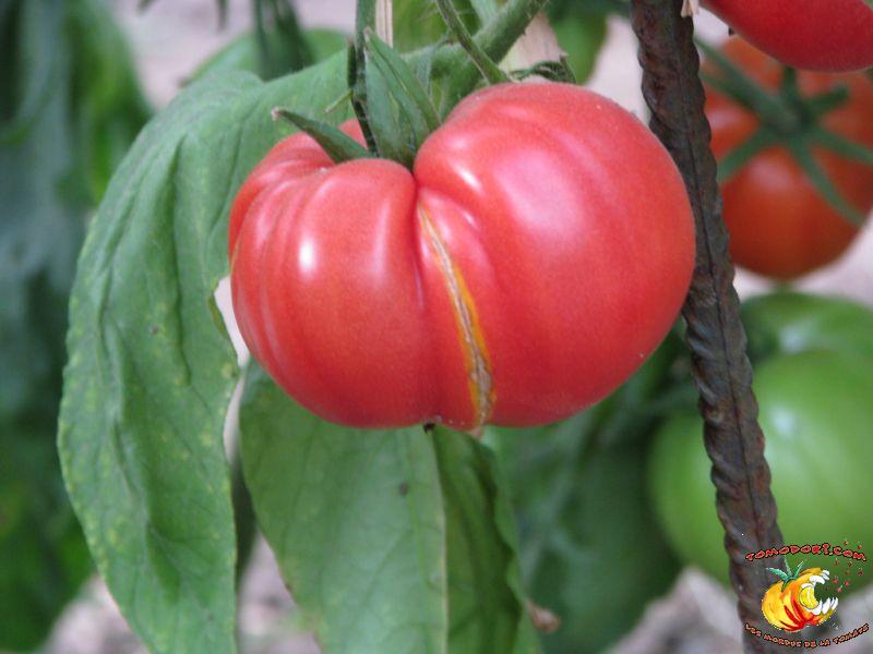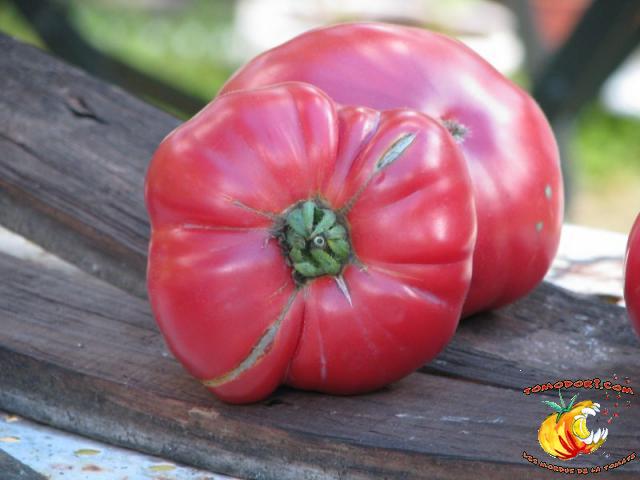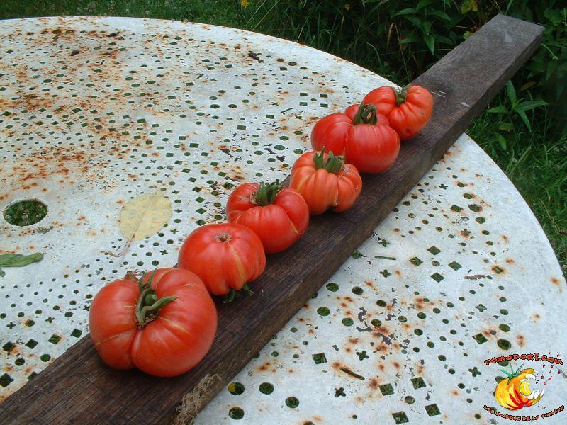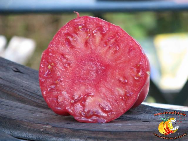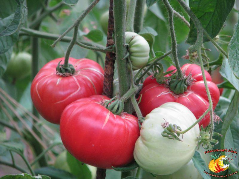 Elle est parfaitement délicieuse cette tomate... Très belle couleur rose, sucrée comme un vrai bonbon, même pas besoin de l'assaisonner...Fruits de type chair de boeuf, assez gros. Variété tardive (85 jours). Croissance indéterminée. Hauteur : 1,80 m. Feuillage de pomme de terre. Origine : Moldavie. Allez vers la fiche de cette variété