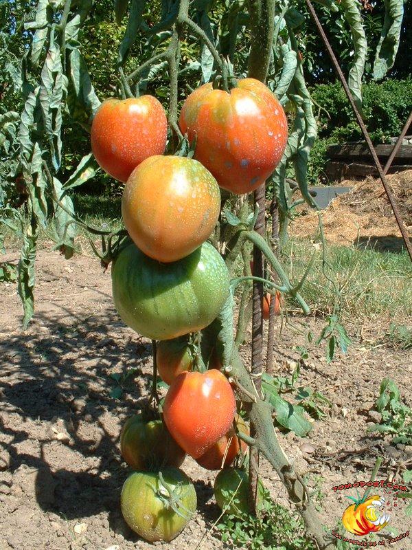 Tomate Anna Russian Date : 19/09/2007 Tomates généralement en forme de cœur, rose foncé, à la chair riche et au goût très parfumé. Une bien belle variété, assez productive.