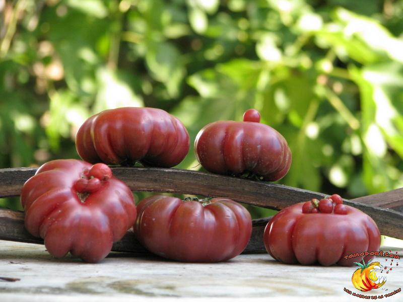 Cette tomate a une forme superbe, très côtelée, tourmentée. De couleur pourpre sombre à violette, elle fait impression. Sa saveur est un peu particulière. Chair qui devient vite molle à maturité. Plant à croissance indéterminée et à feuillage normal. Allez vers la fiche de cette variété