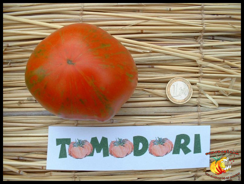Tomate Schimmeig Creg Date : 19/09/2007 Belles tomates rayées orange et rouge, un peu allongées, à la chair peu aqueuse et au bon goût de tomate. Croissance semi déterminée. Feuillage normal.