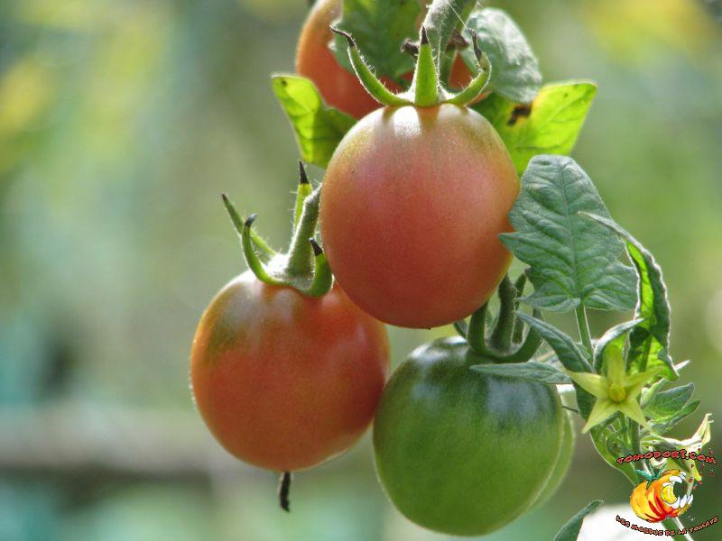 Très belle tomate cocktail en grappe, bicolore. Saveur très agréable.