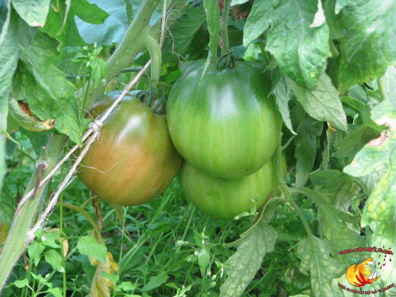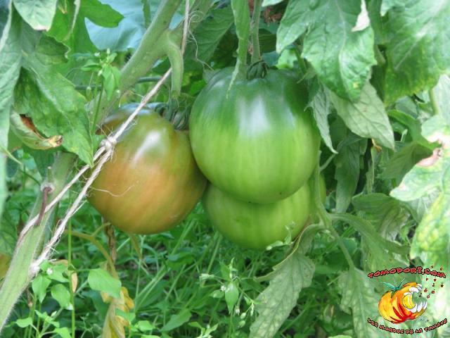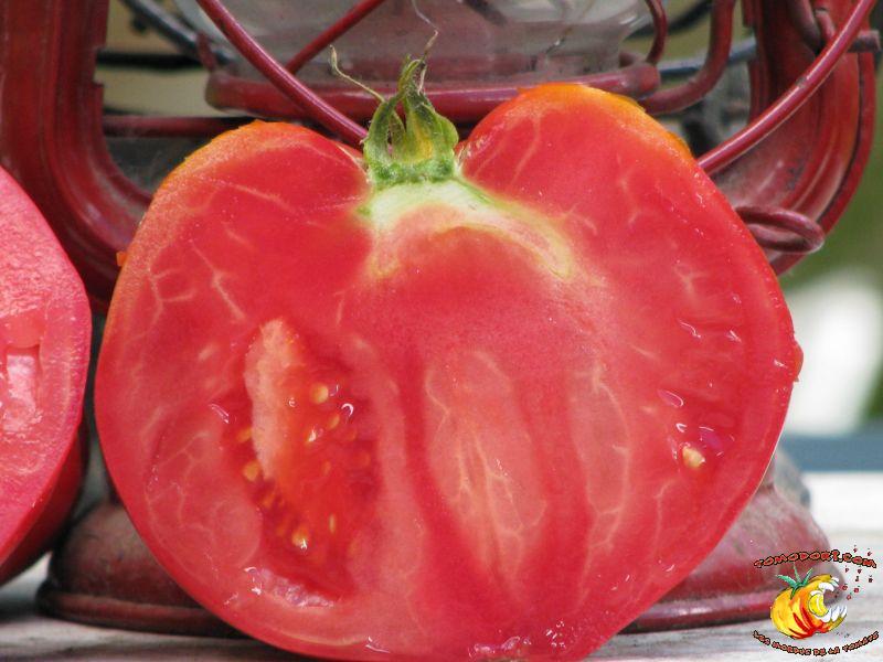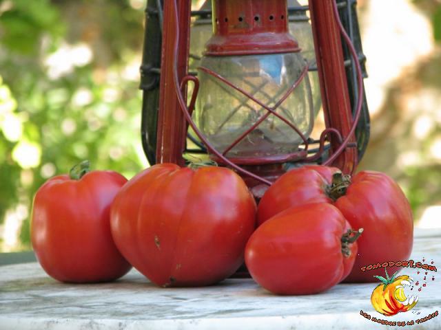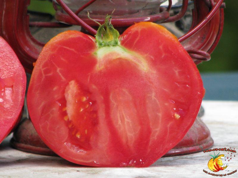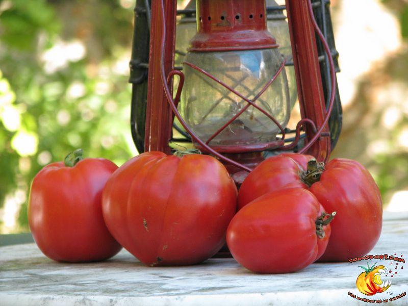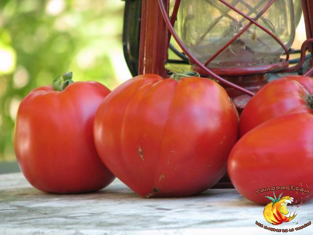 Belle tomate de type cœur de bœuf, d'un beau rouge. Un peu de vert au collet. Fruit très charnu à la bonne saveur de tomate. Idéale pour les coulis. Variété à croissance indéterminée, de saison, à feuilles normales. Vient d'Australie. Allez vers la fiche de cette variété